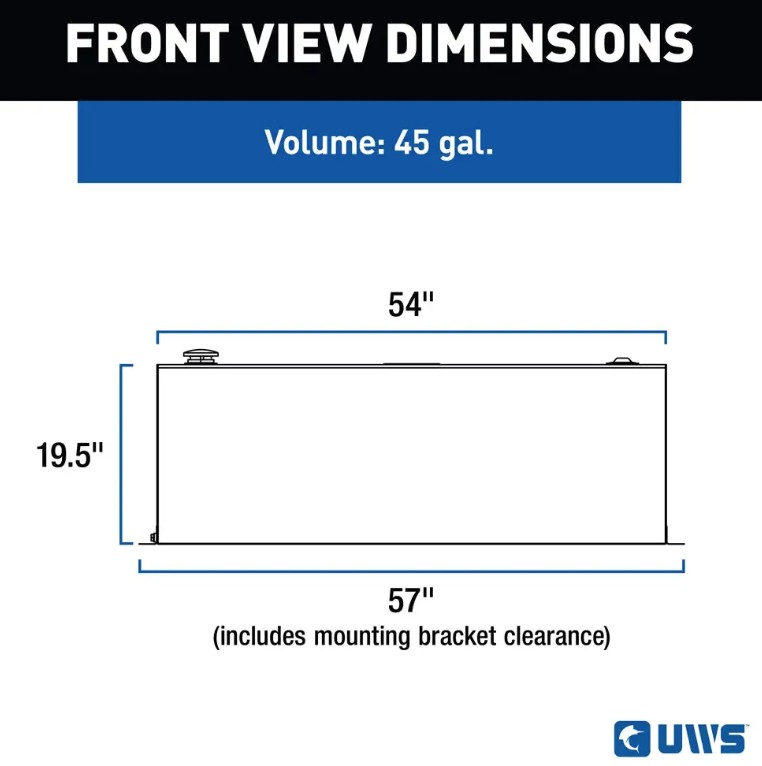Here are the measurements of the UWS 45-Gallon Rectangle Steel Transfer Tank - Matte Black - UWSST-45-R-MB